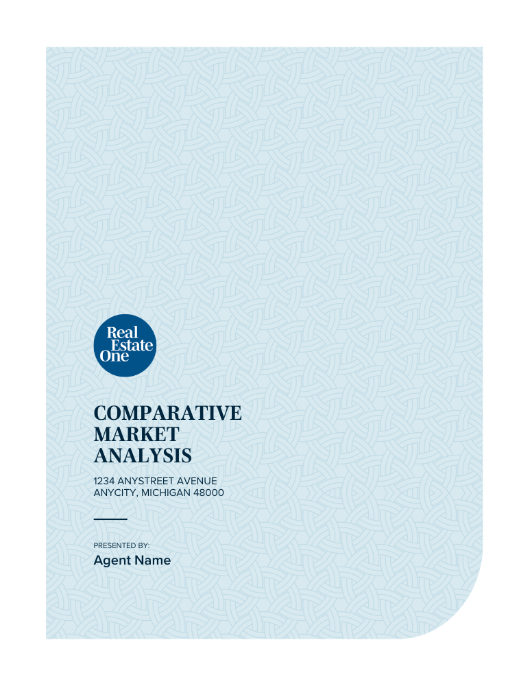 Add your name and the property address, then print on lightweight card stock and bind with your CMA presentation.