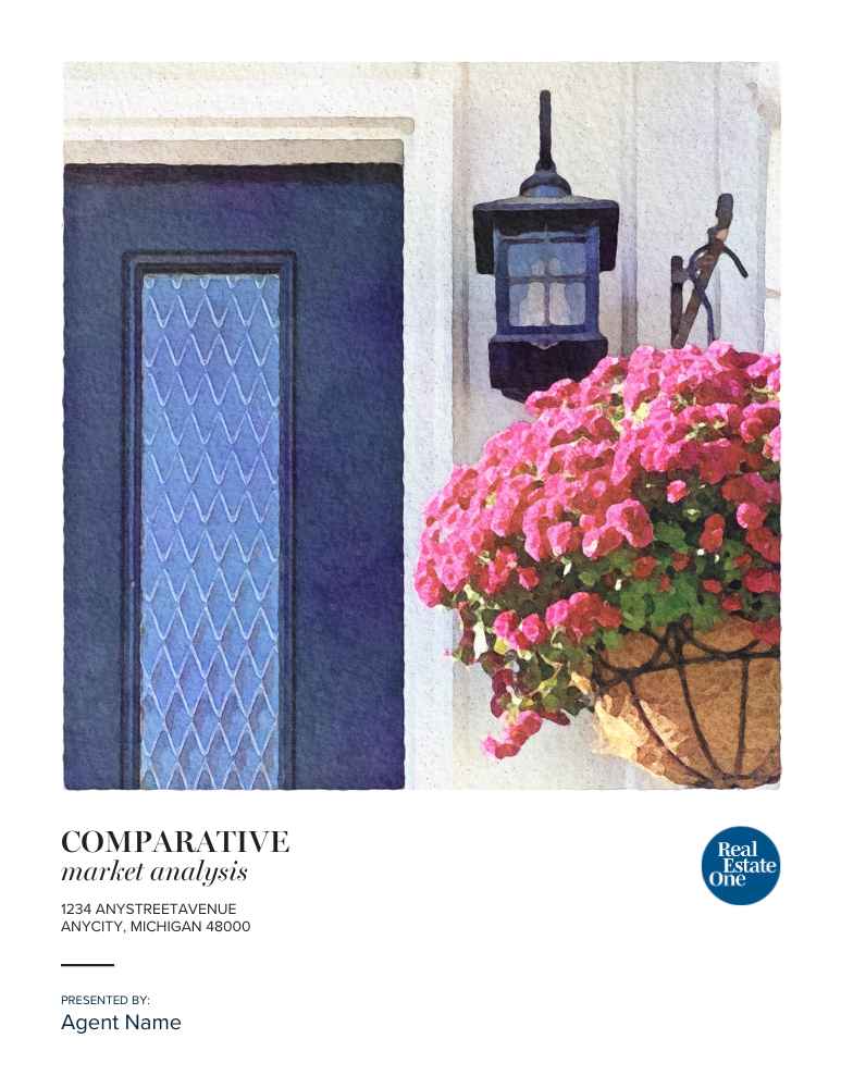 Add your name and the property address, then print on lightweight card stock and bind with your CMA presentation.