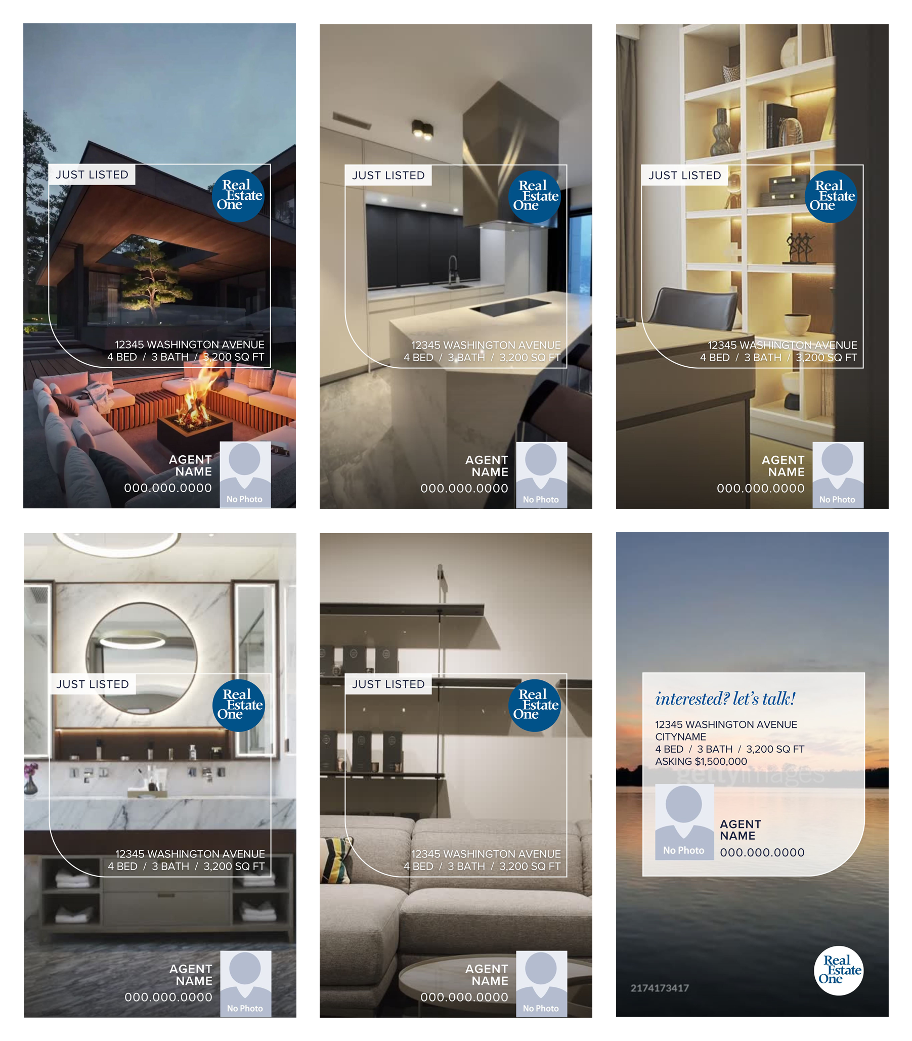 Use your phone to record some simple videos of your listing or hire a professional. Then drop in your videos onto the separate pages in this template. Download as a MP4 video set to music to post to your social sites. Modify all text to fit your needs!