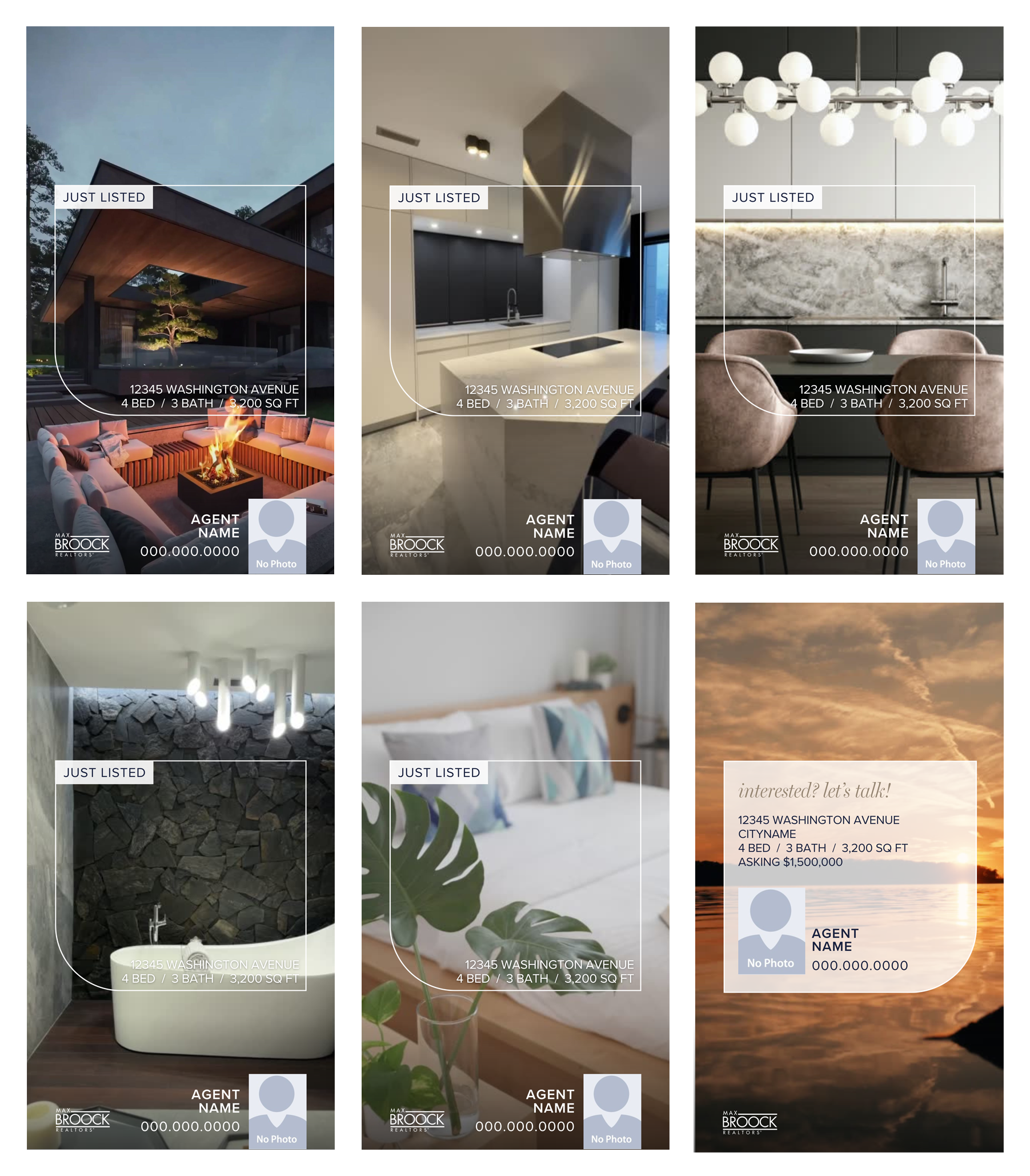 Use your phone to record some simple videos of your listing or hire a professional. Then drop in your videos onto the separate pages in this template. Download as a MP4 video set to music to post to your social sites. Modify all text to fit your needs!